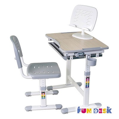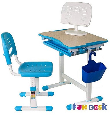 «ФанДеск» могут регулировать высоту парты под рост ребенка, а столешница может изменять угол наклона. Каждую модель можно оборудовать дополнительными аксессуарами. Парта «FunDesk» имеет множество ящиков для хранения канцелярских принадлежностей и тетрадей.